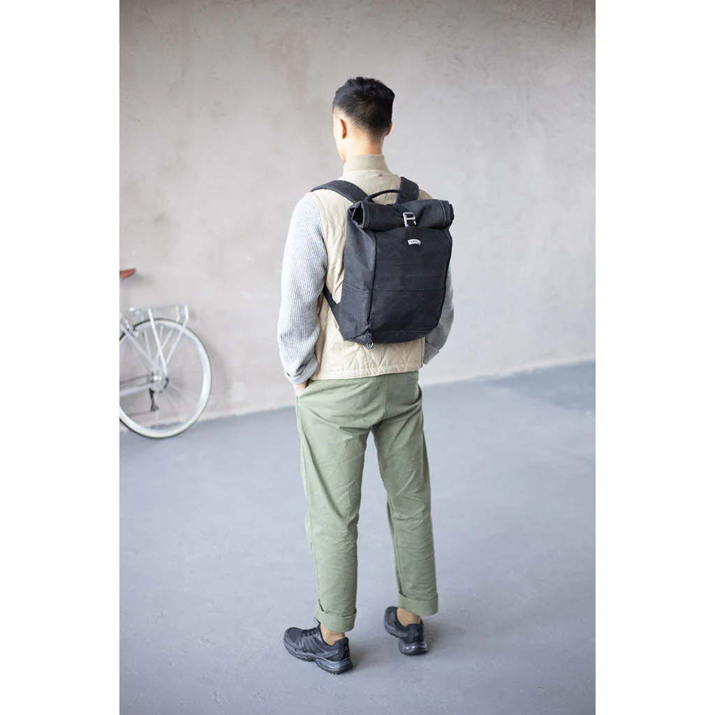 This handsome roll-top backpack has a hidden superpower. Twenty seconds of zipping and clipping, and it transforms into a pannier that you can attach to your bike. It's built in a sturdy waxed cotton that gives it a rugged vintage look while still protecting your stuff from the elements, and the roll-top closure is a simple yet secure way to keep the rain from seeping in – whether you're zipping across town on your mechanical steed or scaling a fellside on Shanks's pony. The padded straps and back panel make for a comfortable carry all day long, and there are various internal and external pockets – including a large one that's roomy enough for a 13" laptop. All the fastenings are constructed in long-lasting aluminium, and a neat touch is the pull-out reflective strip on the front for extra visibility in low-light conditions.